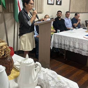 Já a homenagem à acadêmica Maria da Purificação de Freitas (Maluba) foi conduzida por Carmem, vice-presidente da Academia Morrinhense de Letras, destacando a importância da acadêmica para a história da instituição e sua presença marcante no meio cultural de Morrinhos.